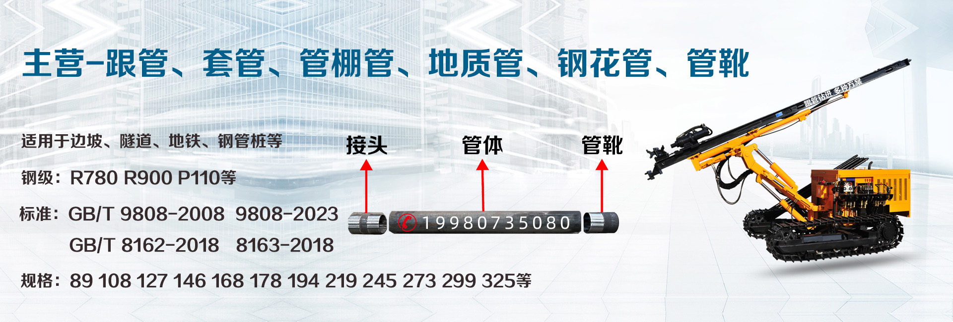 主營(yíng)產(chǎn)品:跟管、套管、管棚管、地質(zhì)管、鋼花管、管靴